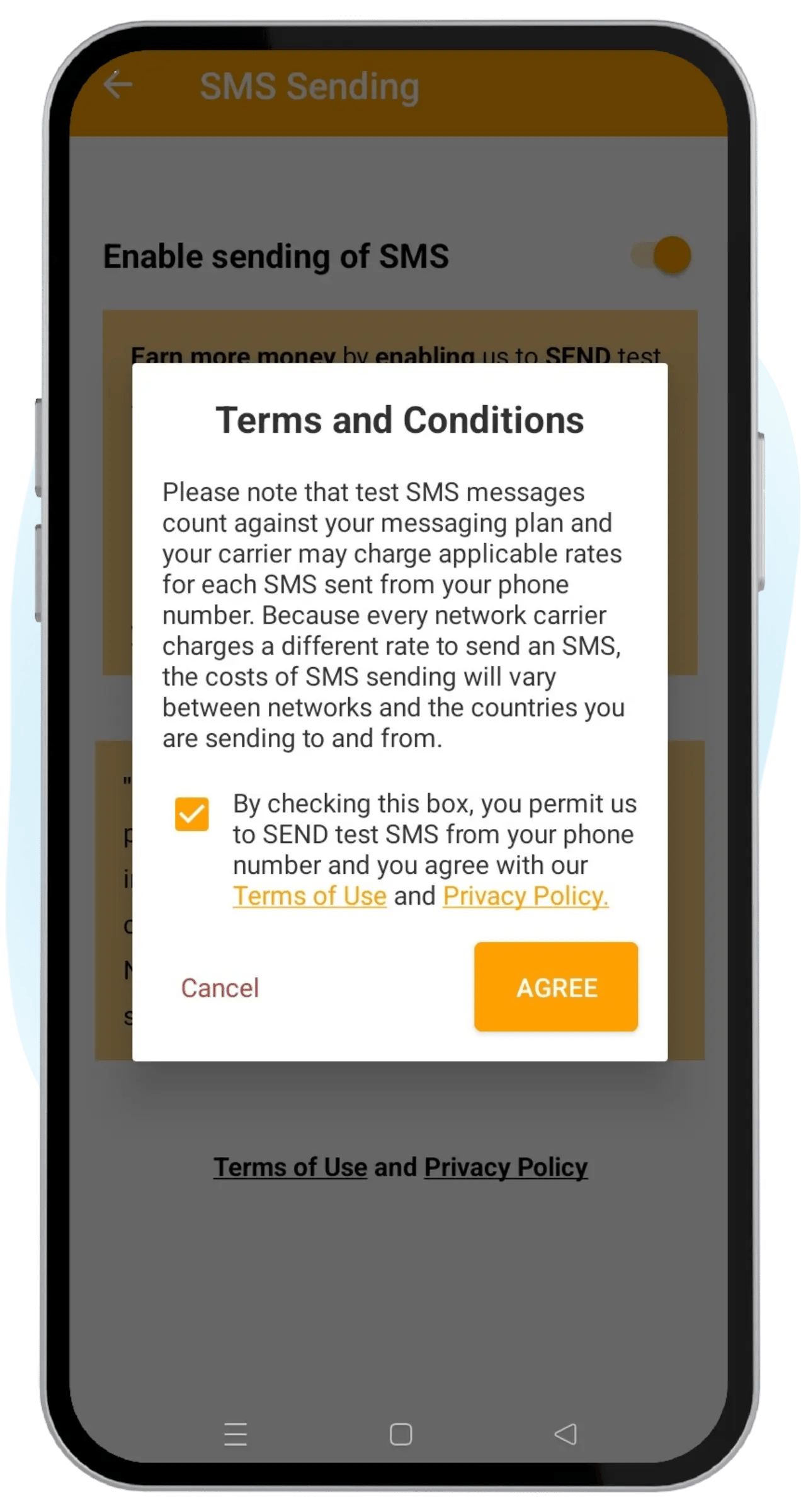 Приложение Money SMS будет отправлять тестовые СМС с вашего телефона всякий раз, когда поступит запрос. За каждое успешно отправленное сообщение вы получите 0,15 €. Таким образом, ваш телефон может отправлять до 50 СМС в месяц.